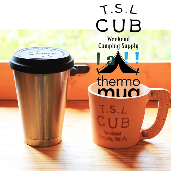 設計を感じる直線とフォルムが美しい、"Thermo Mug"社のステンレス2層タンブラーをベースに、高品質なヌメ革で" TSL CUB "と " La!! Marche Merveille "の刻印を打ち込みルックスの良いタンブラーホルダーを製作しました!