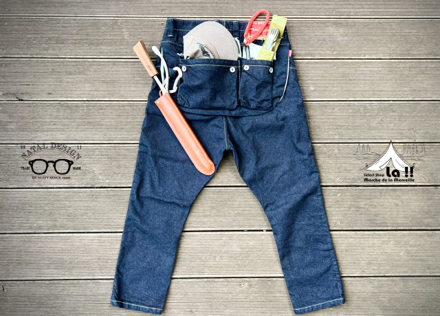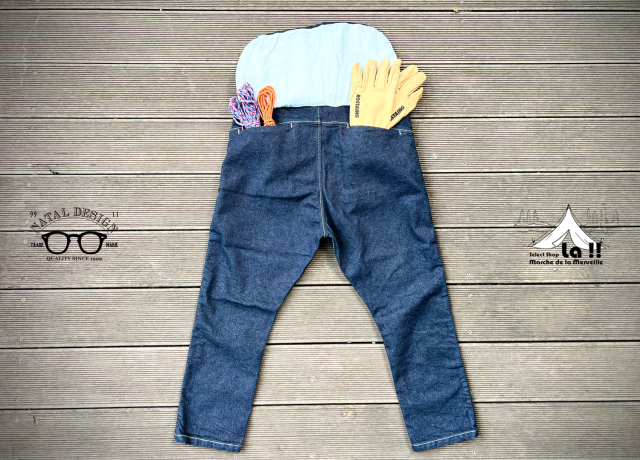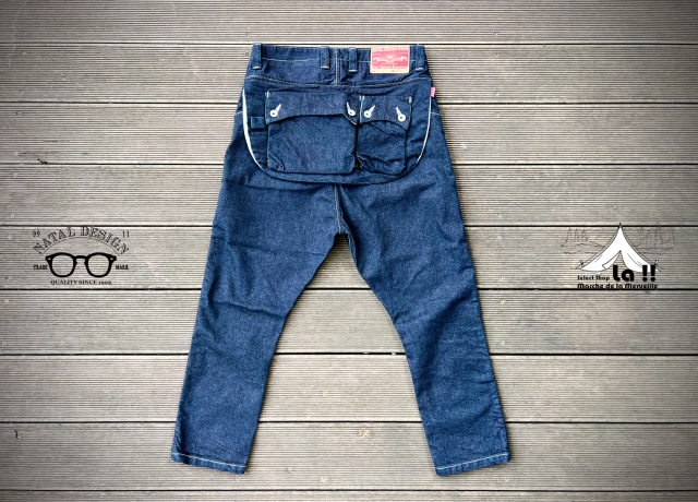 縫製から加工まですべて世界有数のデニムの産地、岡山の工場にて仕上げたワークテイストの8ポケットサルエルデニムパンツです。 今回はインディゴが荒々しくも深い"ONE WASH"カラーのご紹介です。 後ろにはエプロンフラップの付いた機能的なデザインのサルエルパンツで、 タイトに履いてもルーズに履いても絵になる良いシルエットに仕上がっています。 また、シャツだろうがTシャツだろうがどんなアイテムでも合わせやすく、キャンプなどでも使えてしまう万能性は見事です。 また穿き心地を良くするためにストレッチ素材のデニム生地を使用しているので、 股上が深いサルエルパンツながらも、窮屈なストレス無くはいていただけます。 <実際採寸>※多少誤差が出る場合がございますご了承ください。 28インチ ウエスト 75cm/股下47cm 30インチ ウエスト 80cm/股下50cm 32インチ ウエスト 85cm/股下53cm 34インチ ウエスト 90cm/股下56cm 36インチ ウエスト 95cm/股下59cm ※腰帯の切り替えが無いデザインの為、ウエスト採寸が太めになっております。 <お客様のウエストサイズの場合の目安は下記の通りです。> ウエスト70cmでしたら28インチ ウエスト75cmでしたら30インチ ウエスト80cmでしたら32インチ ウエスト85cmでしたら34インチ ウエスト90cmでしたら36インチ