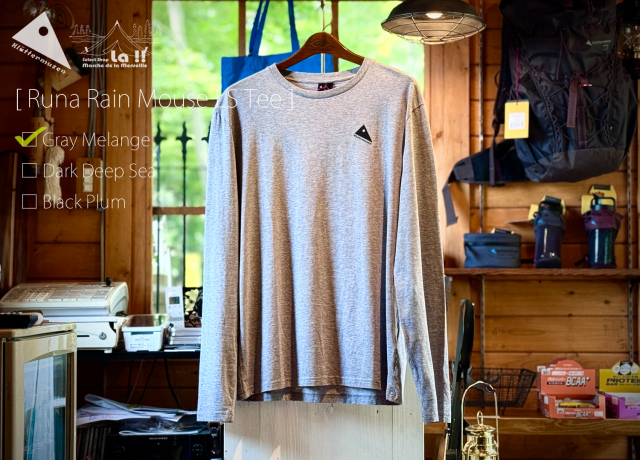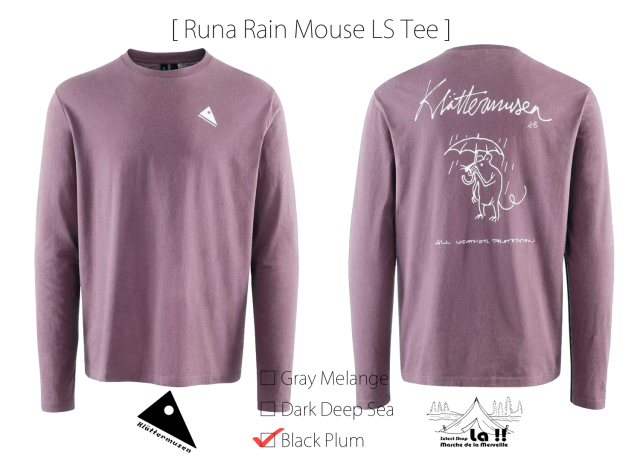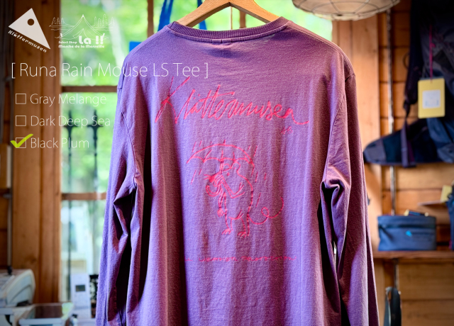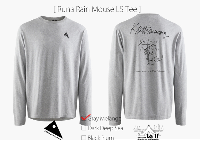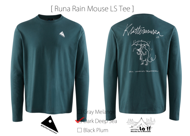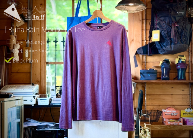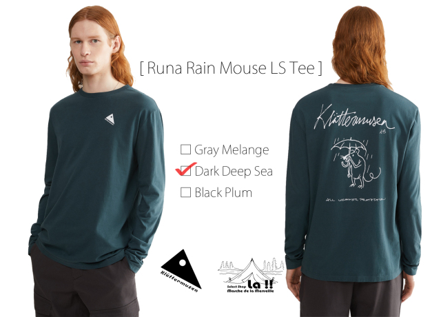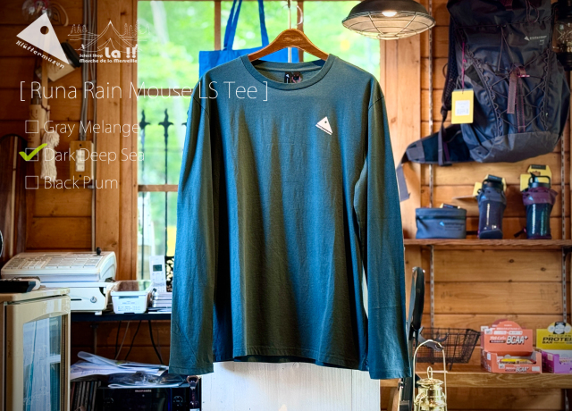 Runa Rain Mouse Tee は、ヨーロッパ限定となる品質の高いプレウォッシュ済みの100%オーガニックコットンをシングルジャージーに編み立てたデイリーに使える、柔らかで着心地の良いロングスリーブTシャツです。