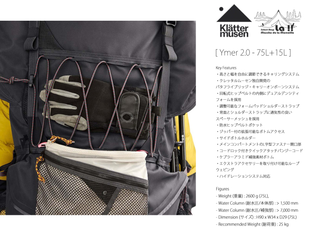 [ Ymer 2.0 75L+15L / イマ― 75L+15L ] - Expedition Backpack -