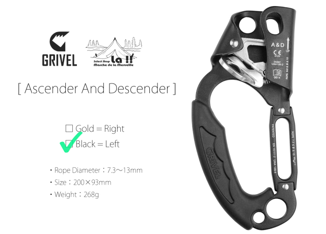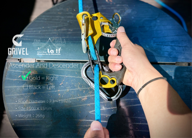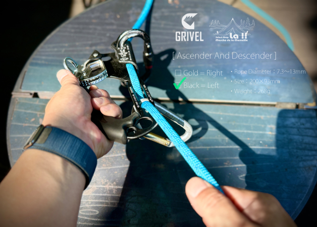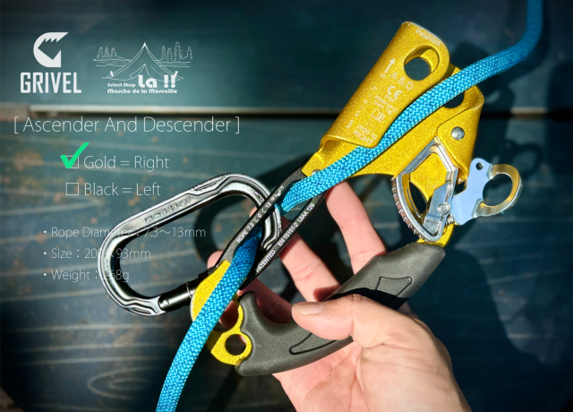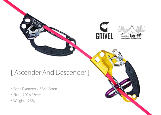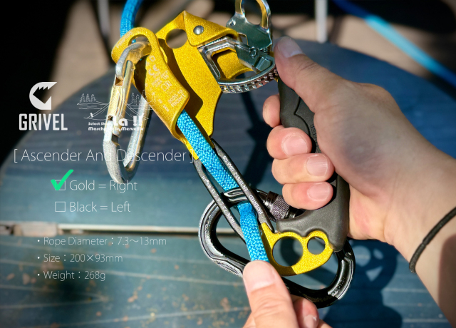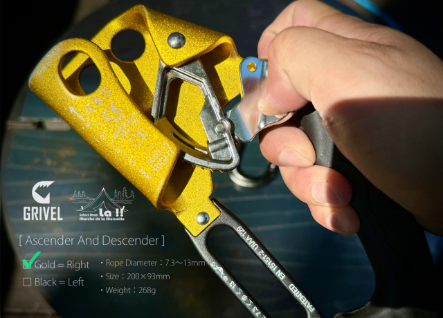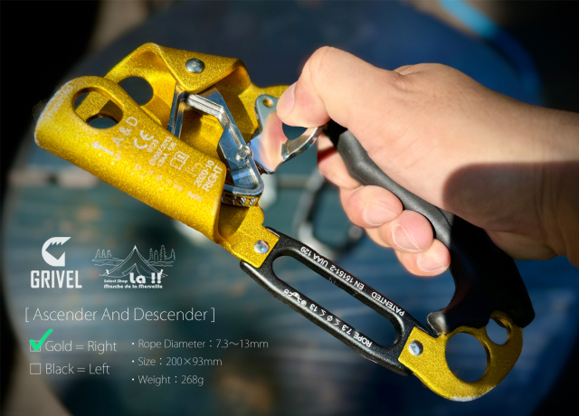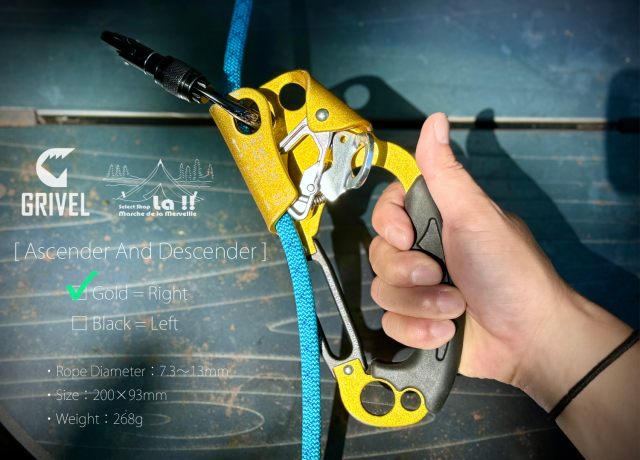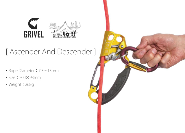 GRIVEL(グリベル)「A & D Ascender」は、ロープ登高はもちろん、ラッペル(下降)まで可能にした、アイデアが素晴らしいハンドル付ロープクランプです。