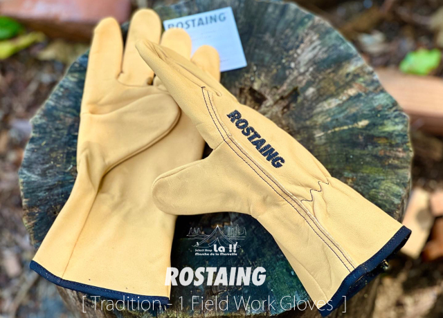 ラマルではこのフィールドワークグローブを一定期間にわたって、ブッシュクラフト、登山、薪割り、レンガ積み、ガーデニングなどのあらゆる作業でテストした結果、Rostaing Tradition-1 の品質と価値は間違いのないものだと考えています。