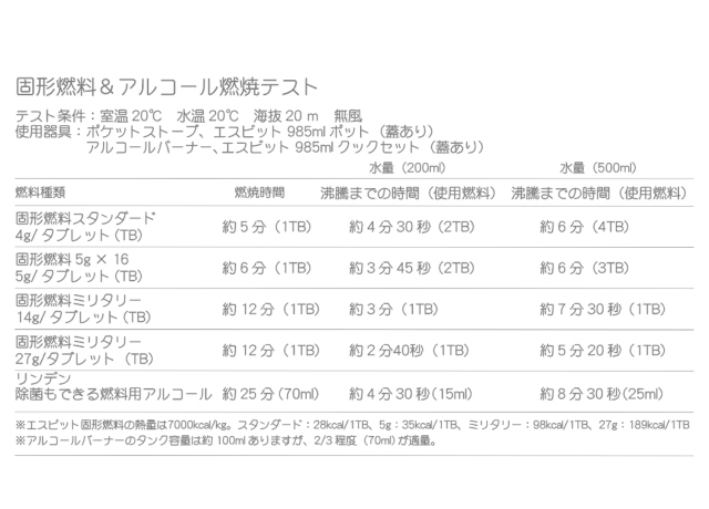 エスビットの固形燃料はアルコール燃料より32%以上カロリーが高い燃料です。