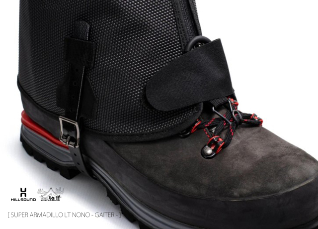 スーパーアルマジロナノは、SuperFabric、C-Change fabric、NanoSphere加工を利用した、世界でも類を見ない高強度なハイテクゲイターです。