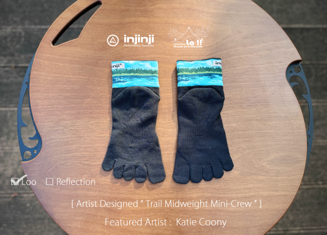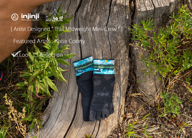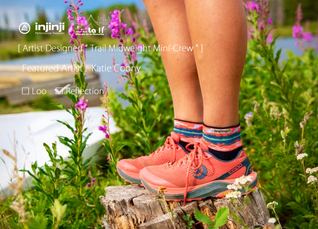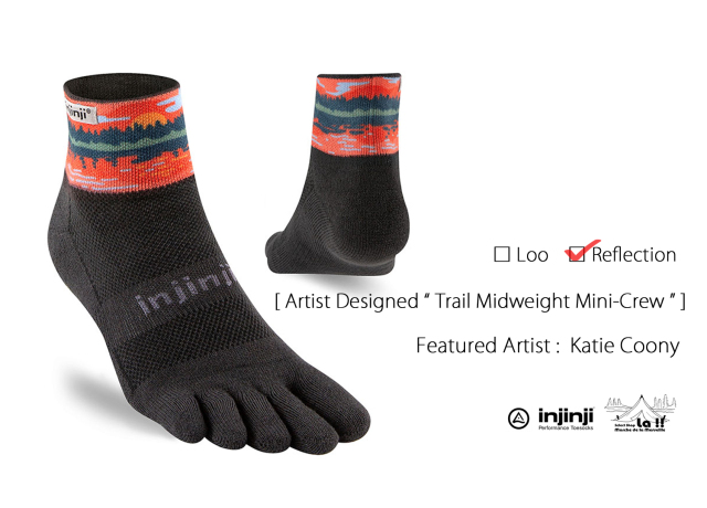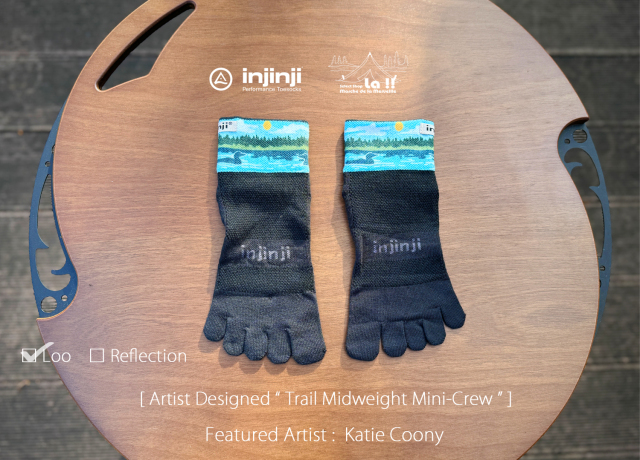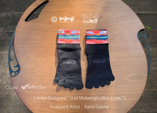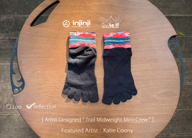ノーシーム(縫目無し)の5本指ソックスで知られるカルフォルニアの Injinji / インジンジが、コラボレートアーティストに Katie Coony / ケイティー・クーニー を迎え、より魅力的になったトレイル ミッドウエイト ミニクルーソックスです。