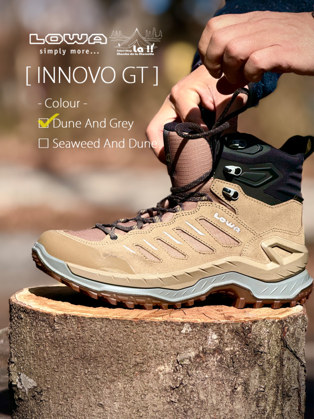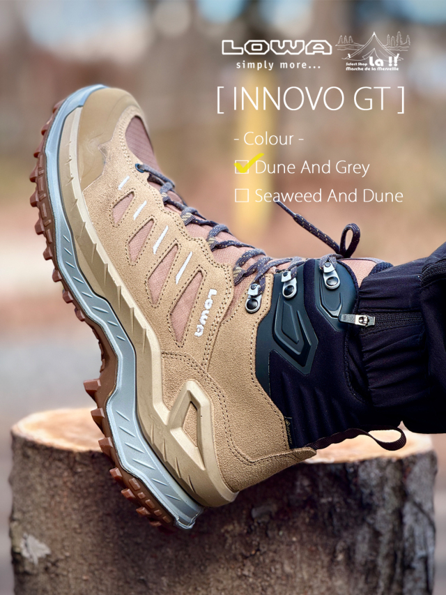 LOWAの〈イノボ GT〉は、これから本格的なトレッキングに挑戦しようというエントリーユーザーの足元をサポートする一足となることを目指してデザインされました。