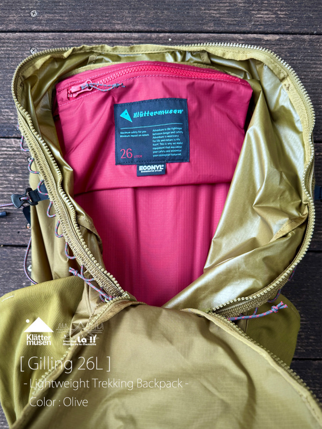 [ Gilling 26L / ギリング 26L ] - 日帰り登山に最適なジップオープンタイプの軽量バックパック -