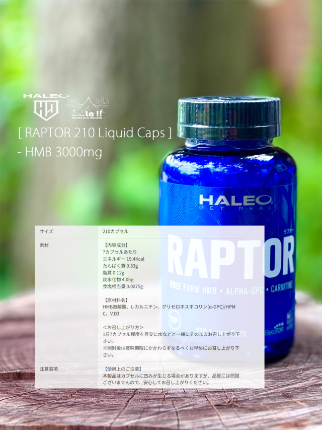 ラプターは、HMBの他にもパワーに深く関わりのあるアルファGPC、サンシャインビタミンとも呼ばれ、多くのアスリートに必要なビタミンD、運動によるウエイトコントロールをサポートするL-カルニチンを配合されています。