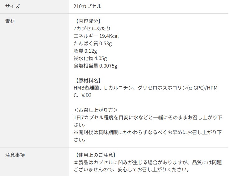 ラプターの1日の摂取目安量である7カプセル中にはHMBが3,000mg含まれています。