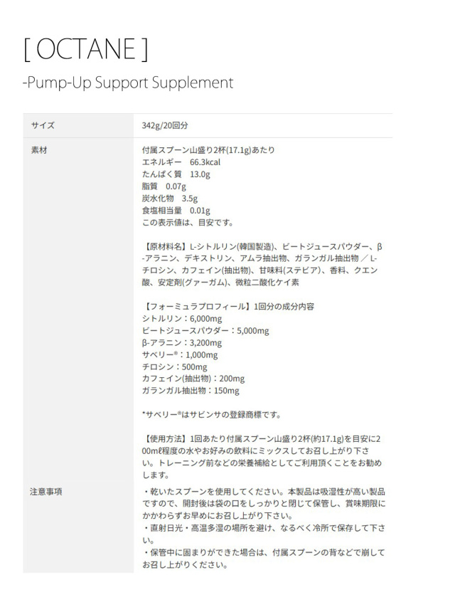 OCTANE / オクタンは、新しい着眼点で設計されたパンプアップサポートサプリメントです。