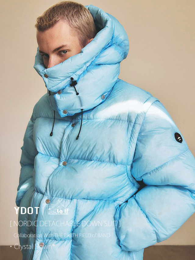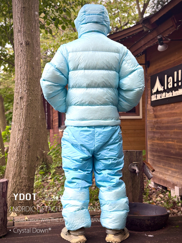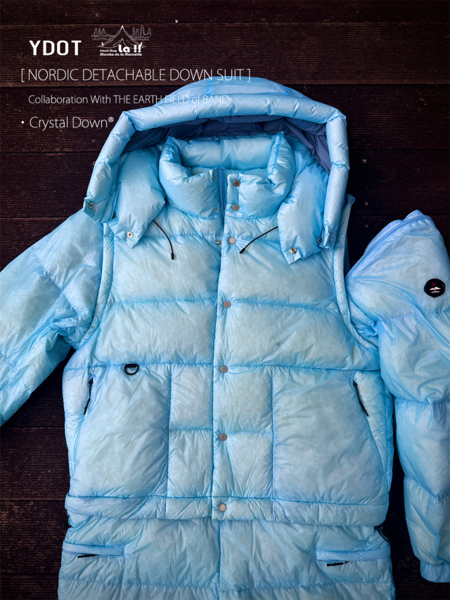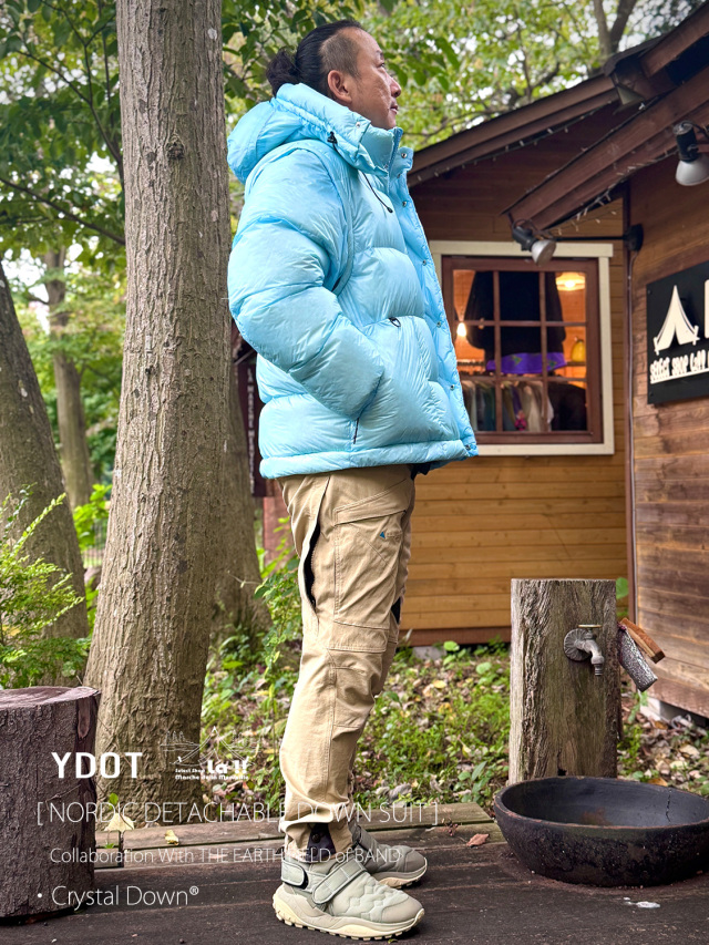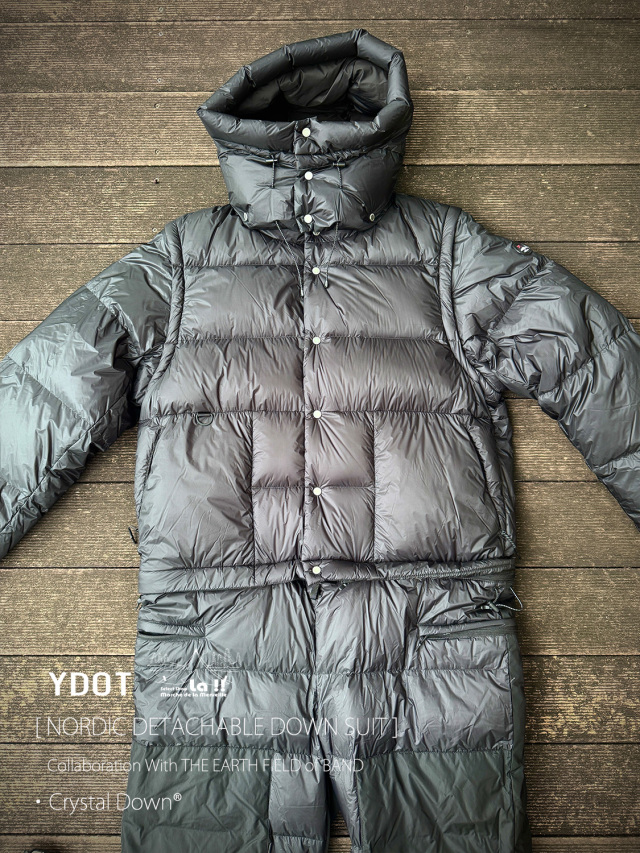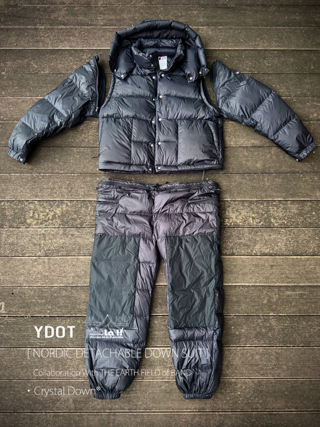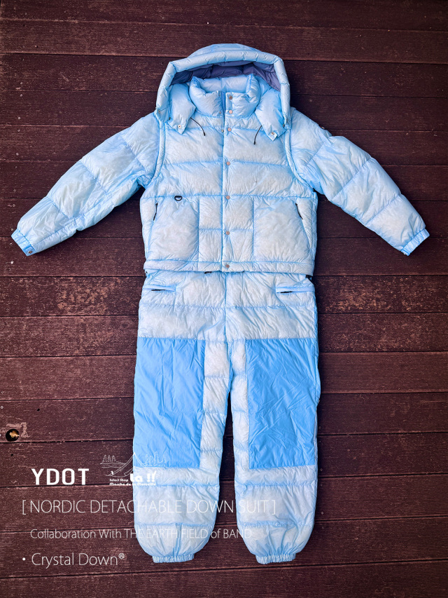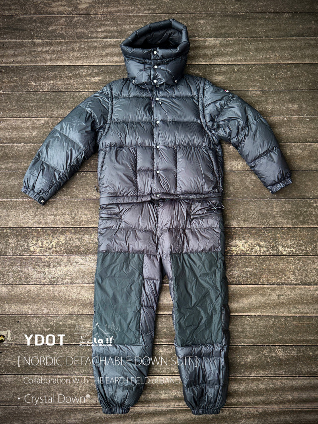 YDOTの名品となっているNORDIC DOWN JACKETをベースに、AUGUSTE PRESENTATION代表の大野氏によるTHE EARTH FIELD of BANDとの限定スペシャルコラボレーションダウンスーツ。
