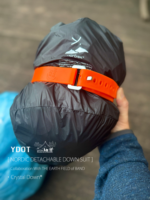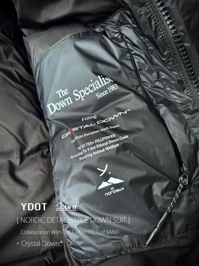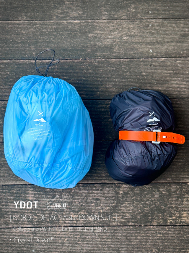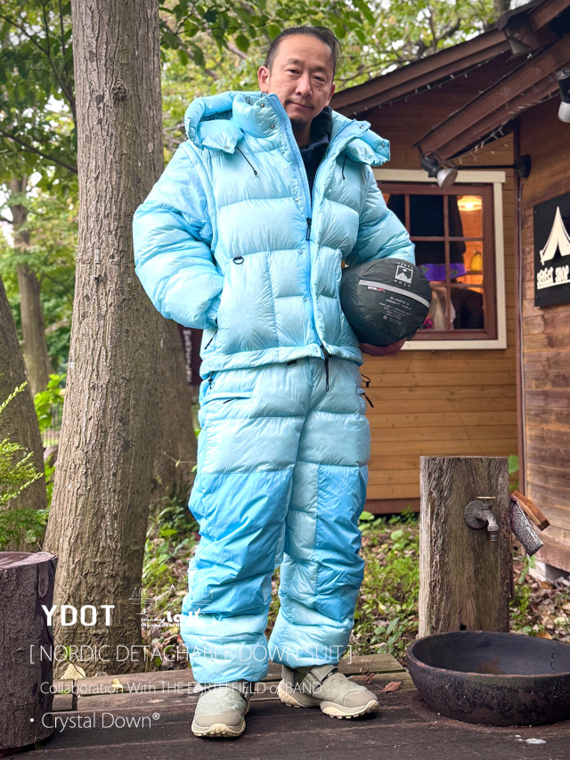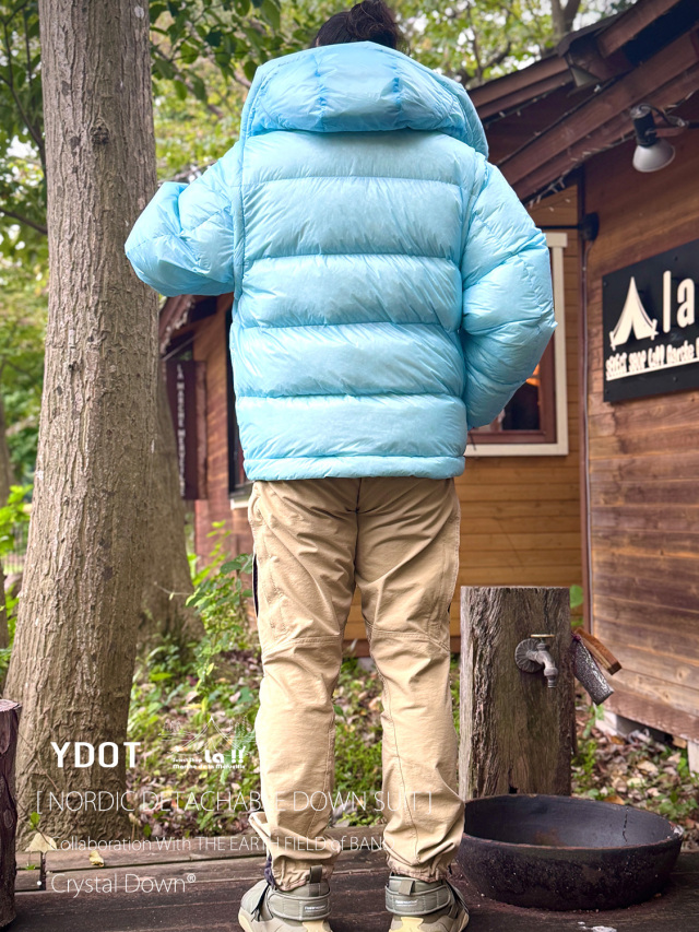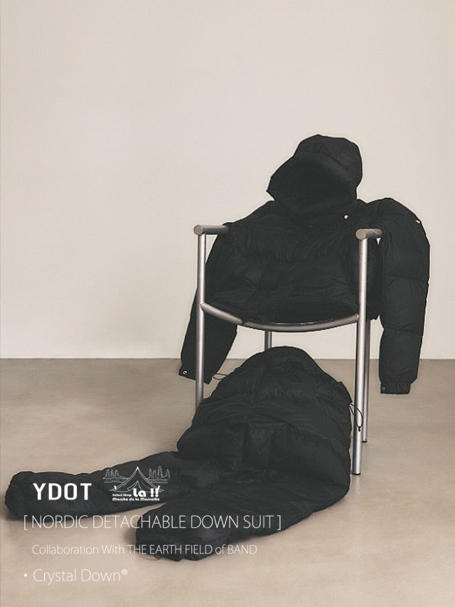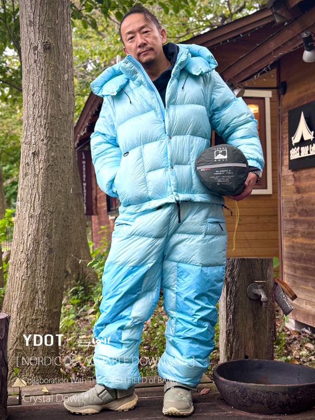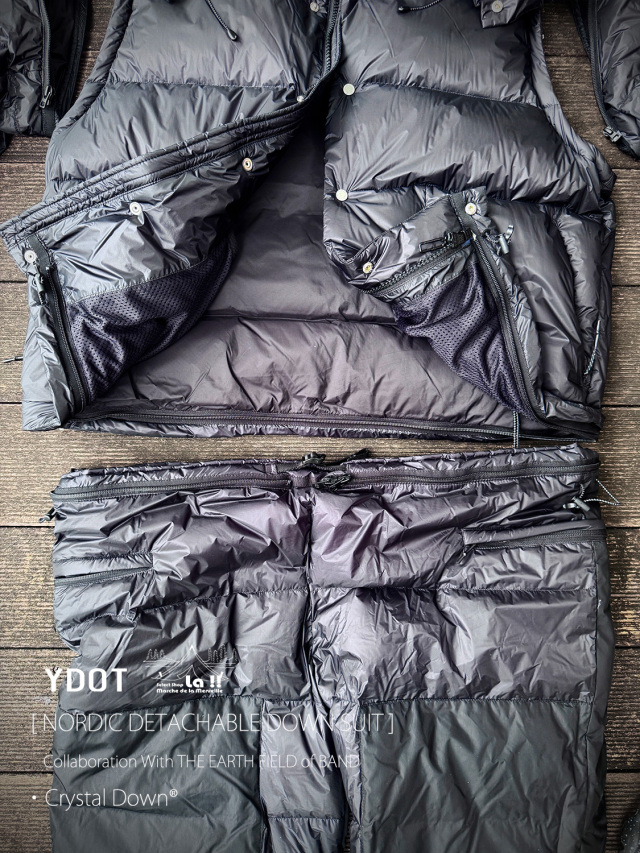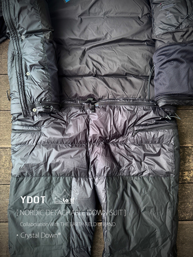 YDOTの名品となっているNORDIC DOWN JACKETをベースに、AUGUSTE PRESENTATION代表の大野氏によるTHE EARTH FIELD of BANDとの限定スペシャルコラボレーションダウンスーツ。