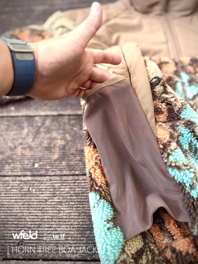 また、裏地はメッシュを採用しており、ボアフリースと適度な空間を設けることで、快適な温度帯、湿度をキープしやすくなっています。