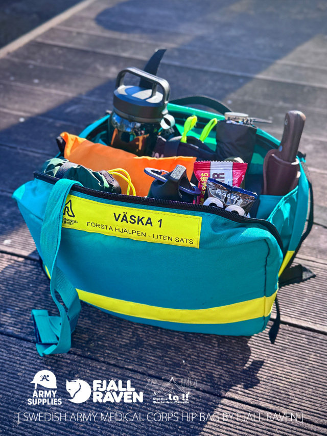スウェーデン軍の医療部隊が使用していたメディカルヒップバッグのデッドストック新品です。