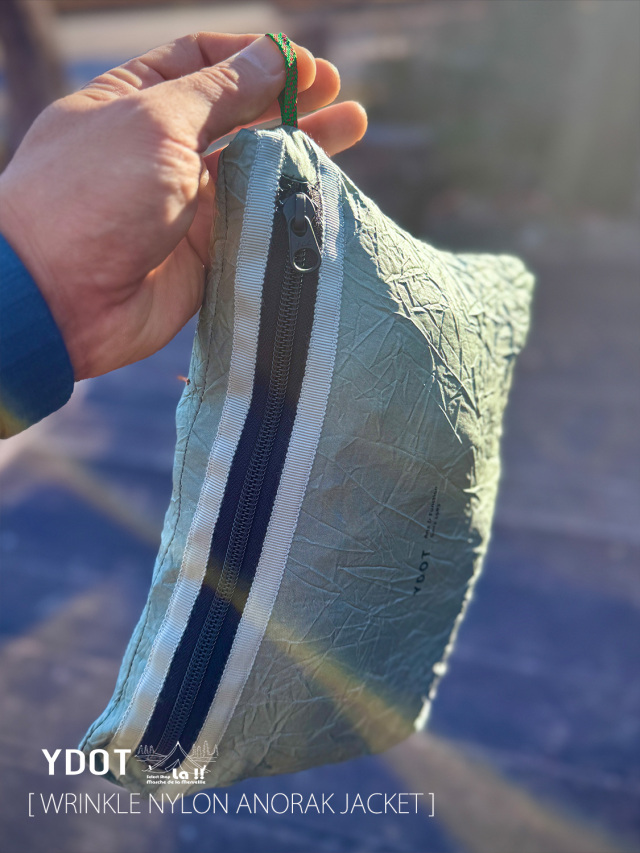 シワ加工とパッカブルの相性に着目し作成されており、施されたテクスチャーは形状固定ですので、俗に言う失敗シワ( なんか嫌な感じのシワの意 )の発生を解決しています。