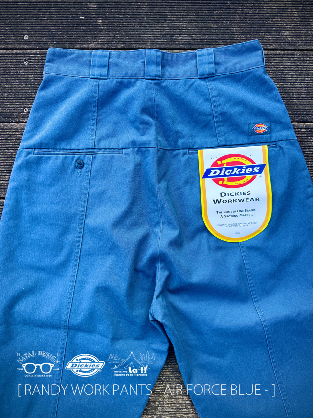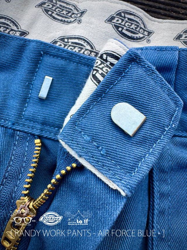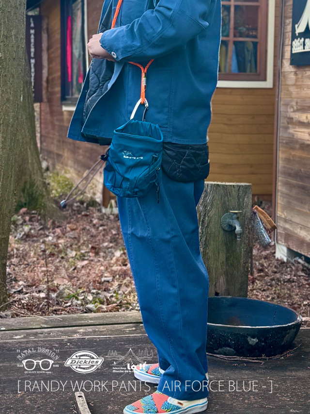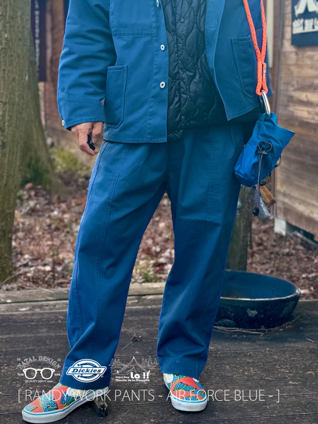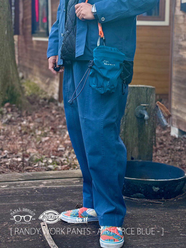 カラーリングは“AIR FORCE BLUE”と名付けられた、ディッキーズらしいワークウエアのタフさを引き立てたソリッドな配色。