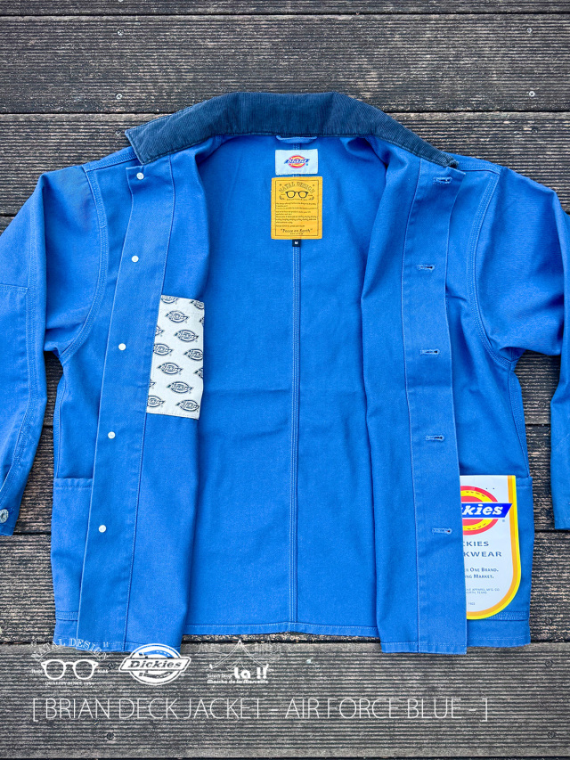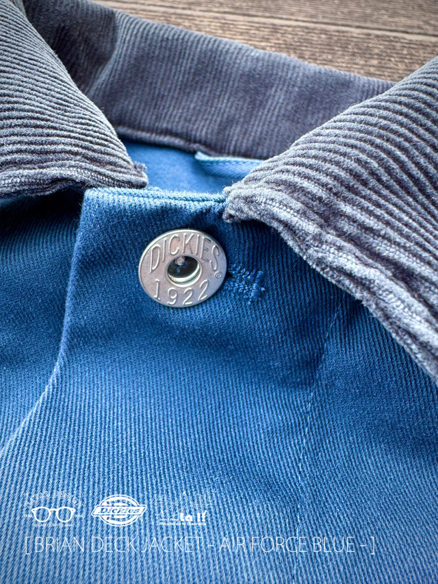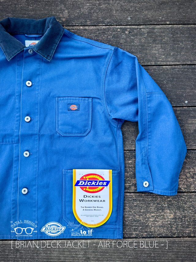 カラーリングは“AIR FORCE BLUE”と名付けられた、ディッキーズらしいワークウエアのタフさを引き立てたソリッドな配色。